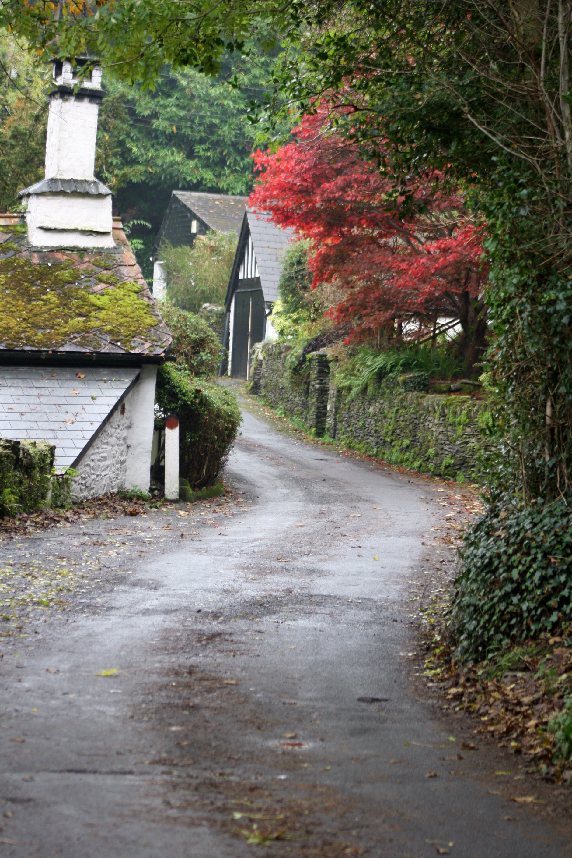 A beautiful winding road! Love that red tree…