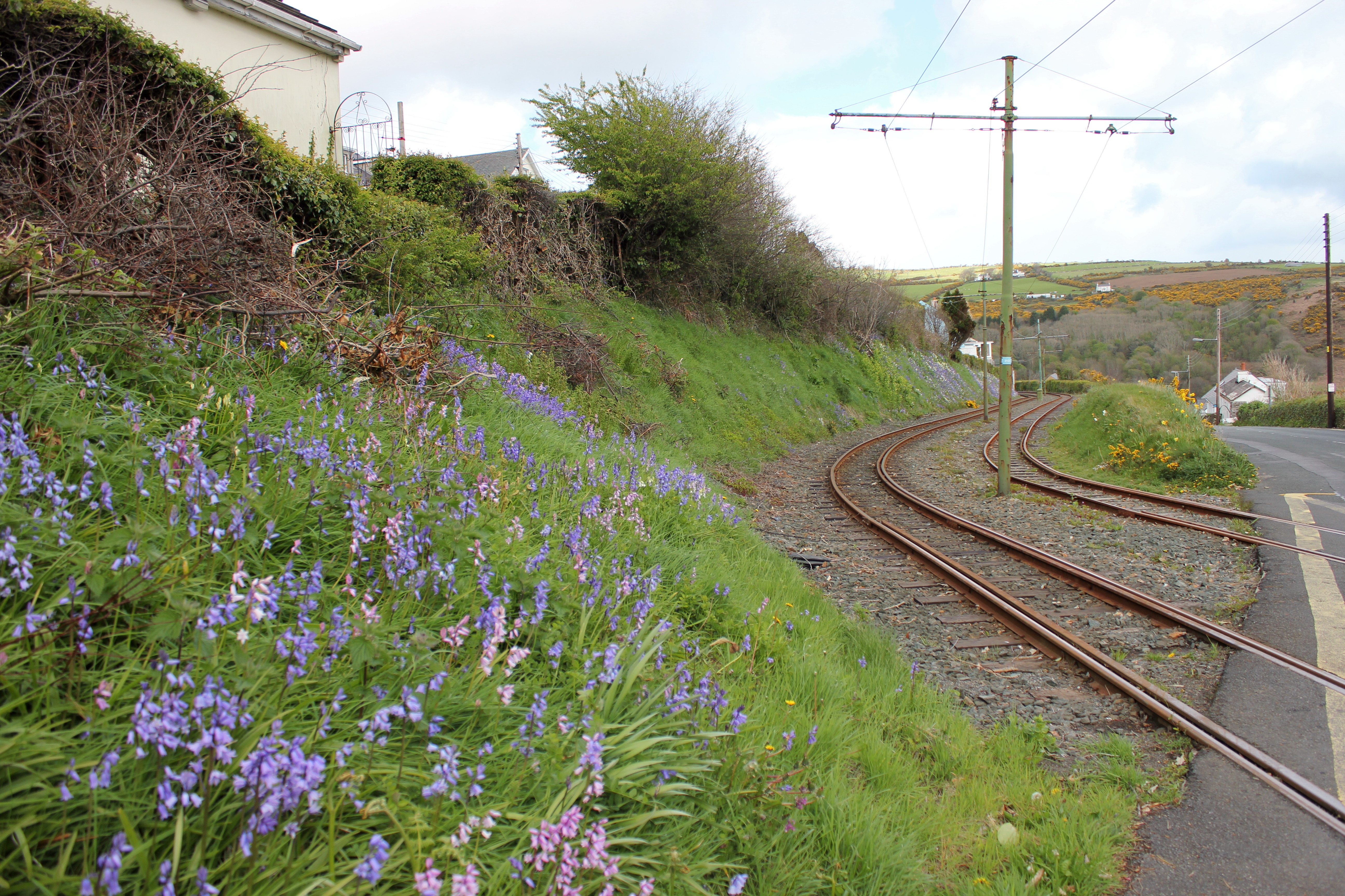 Bluebells 10 Replies The bluebells have eventually arrived, much later than last year due to this year’s cold, wintery start to spring. This is the electric railway crossing on Old Laxey Hill which leads down to the bay.